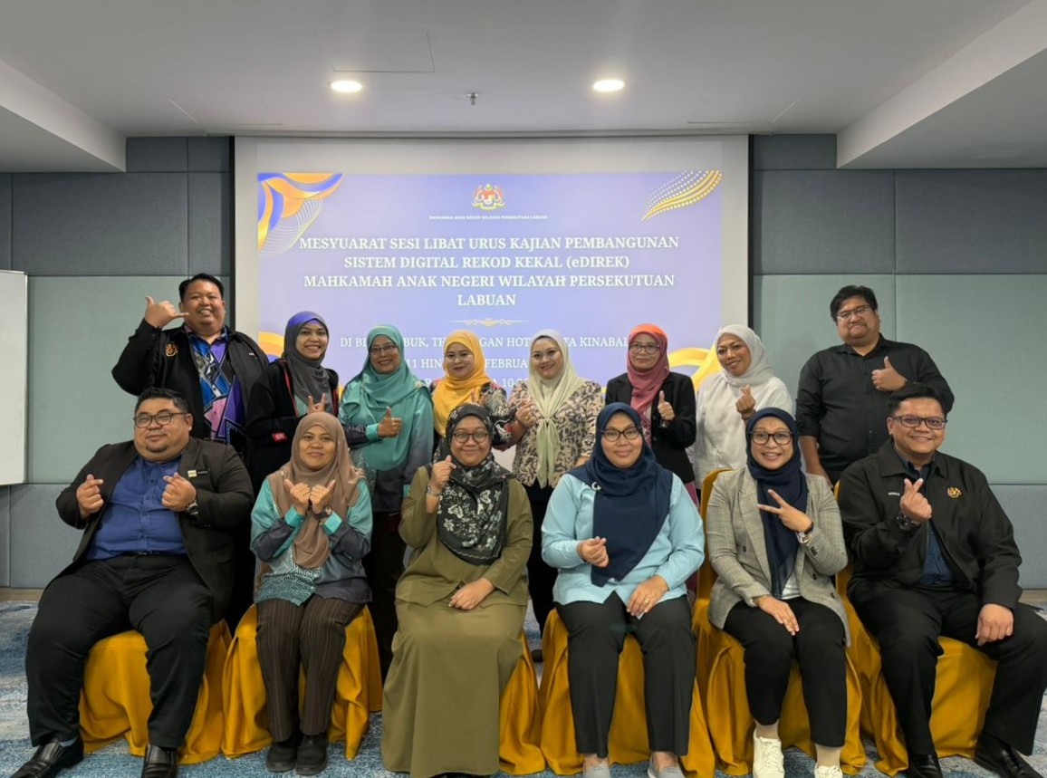 11-13 FEBRUARI 2026 – Pejabat Mahkamah Anak Negeri Wilayah Persekutuan Labuan (MANWPL) telah berjaya menganjurkan Mesyuarat Sesi Libat Urus Kajian Pembangunan Sistem Dokumen Rekod Kekal (eDIREK) yang berlangsung selama tiga hari bertempat di Promenade Hotel, Kota Kinabalu, Sabah.